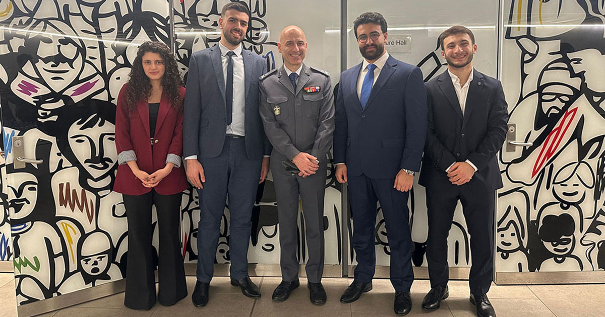 In her opening address, Gaelle Youness presented the course framework and the synchronization between the five research tracks. Attendees included Dr. Lama Mattar, coordinator of the Honors Program and associate professor of nutrition at LAU, Dr. Leila Dagher, director of LAU’s Center for Policy Action, and part-time faculty at the school Alexandra Chaaya, along with representatives of the Lebanese Internal Security Forces, including General Joseph Mousallem, head of the Public Relations Department, and General Mahmoud Kobrosly, head of the Intelligence Department.