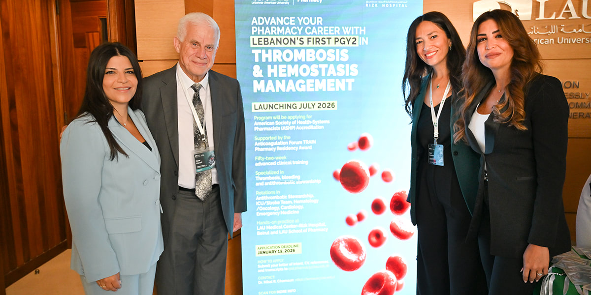 Sessions on antimicrobial and antithrombotic stewardships further highlighted LAU’s leadership in clinical advancement, with Dr. Nibal Chamoun, clinical associate professor and assistant dean for experiential education and residency program, announcing the launch of a new Thrombosis and Hemostasis Management postgraduate pharmacy residency program scheduled for July 2026.